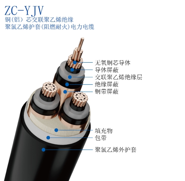 字母含義:YJ:交聯聚乙烯絕緣;V:聚氯乙烯護套;L:鋁導體(銅導體省略)