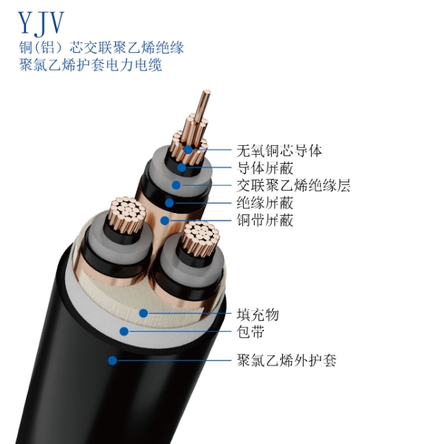 字母含義:YJ:交聯(lián)聚乙烯絕緣;V:聚氯乙烯護(hù)套;L:鋁導(dǎo)體(銅導(dǎo)體省略)